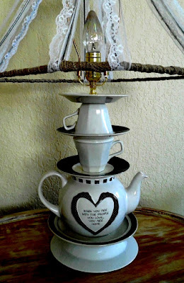 As special as these are, we can make them even more special, by making a lamp just for you. If you have a few pieces of your wedding china, or maybe your grandmother's, or just something you love, we can make a custom lamp just for you. Contact me through this blog, or my Etsy store.